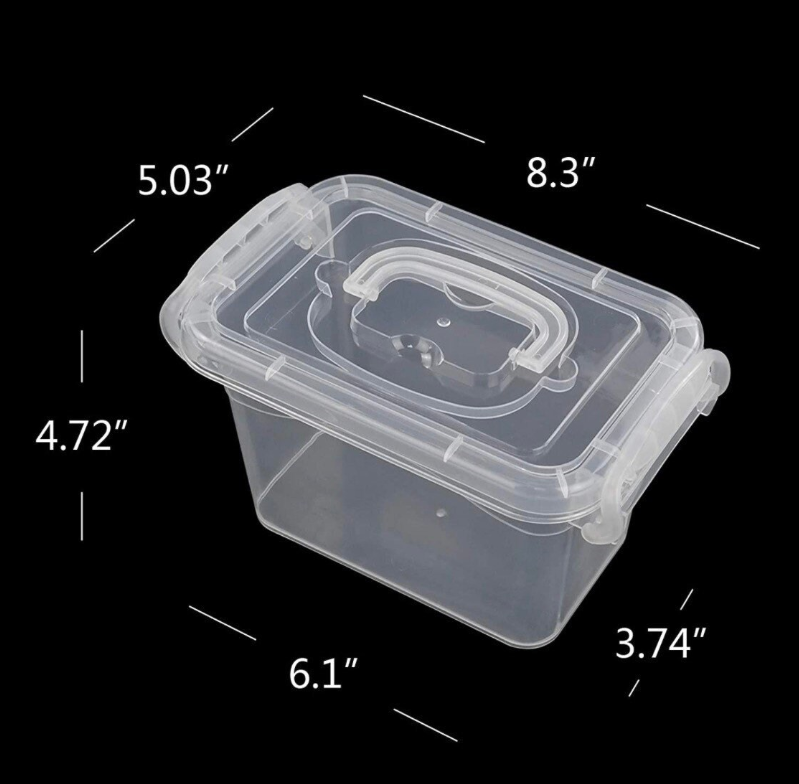 Customized, plastic, locking chalk boxes with a handle to store your gymnast's chalk. These are the perfect size! Small enough to fit in your gym bag, but large enough to catch the fall out of your chalk so you don't waste even the tiniest amount.
